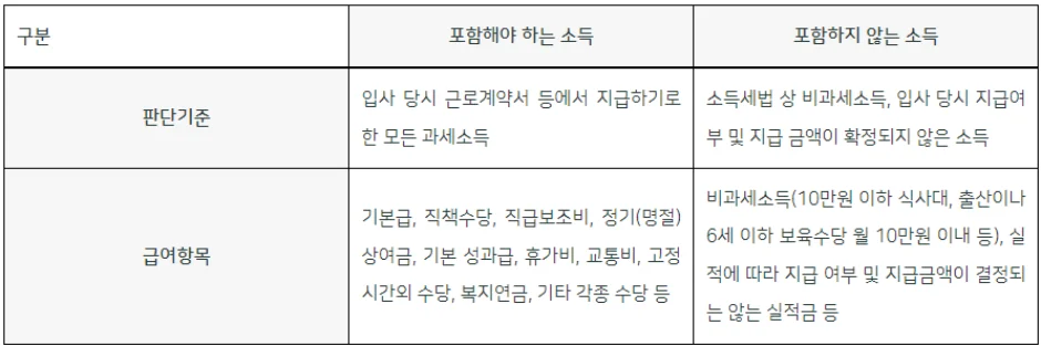 월 소득액은 기본급과 수당, 상여금 등이 포함됩니다. 비과세 소득에 해당하는 식대, 보육수당 등을 제외한 급여 항목이 포함됩니다.